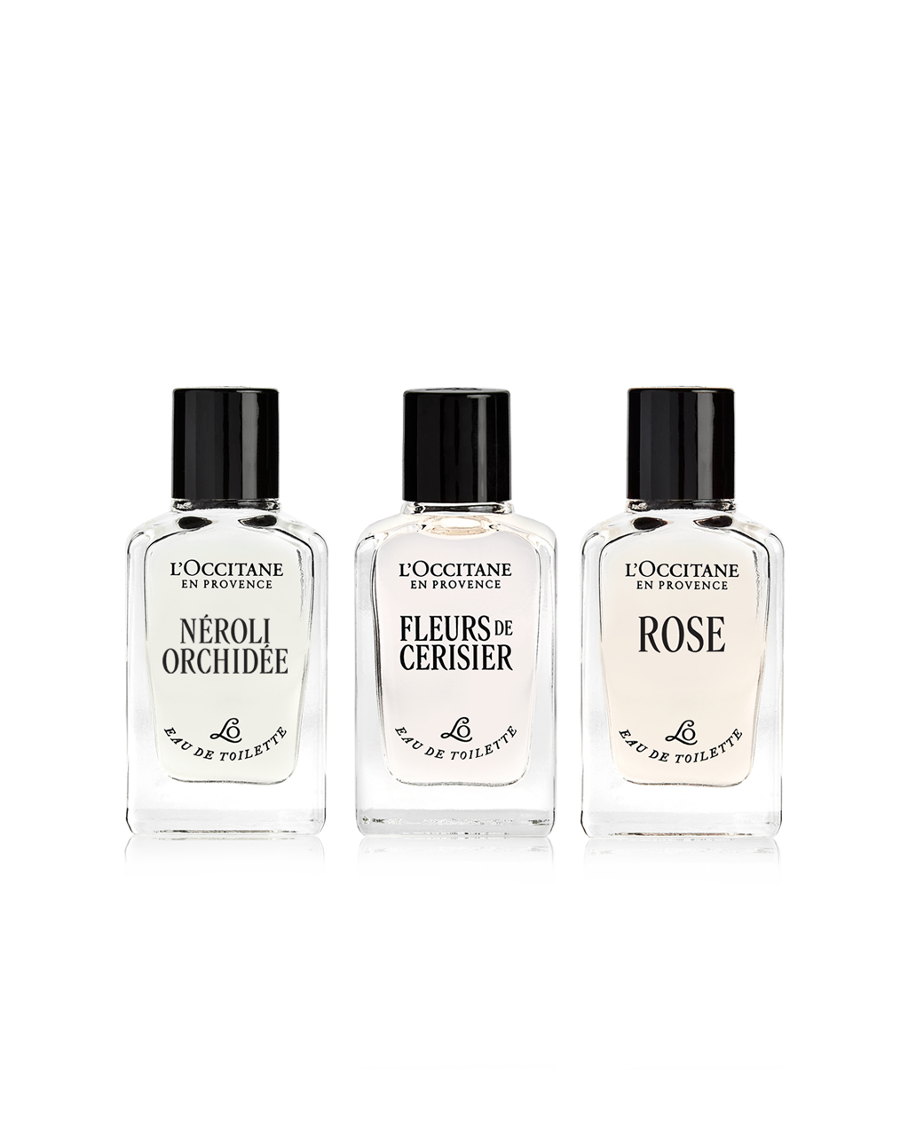 Fleurs de Cerisier Eau de Toilette (7.5ml; 0.25 fl. oz.): Both delicate & floral, evoking fresh notes of cherry blossom from Provence, lily of the valley, and a base of creamy amber and woody musk.