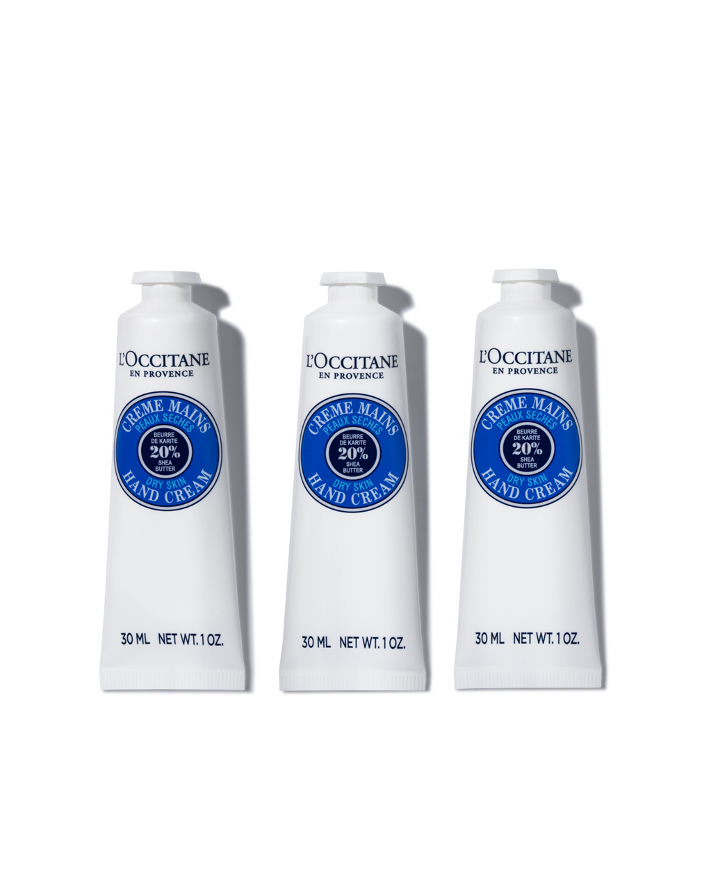Set comes preassembled in signature yellow gift box and includes: 3 x Shea Butter Hand Creams Net wt. 1 oz./ 30ml
