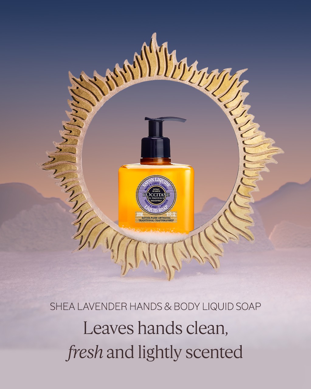 Shea Lavender Hands & Body Liquid Soap (10.1 fl. oz.; 300ML): This cleansing liquid soap leaves hands clean, fresh and lightly scented.